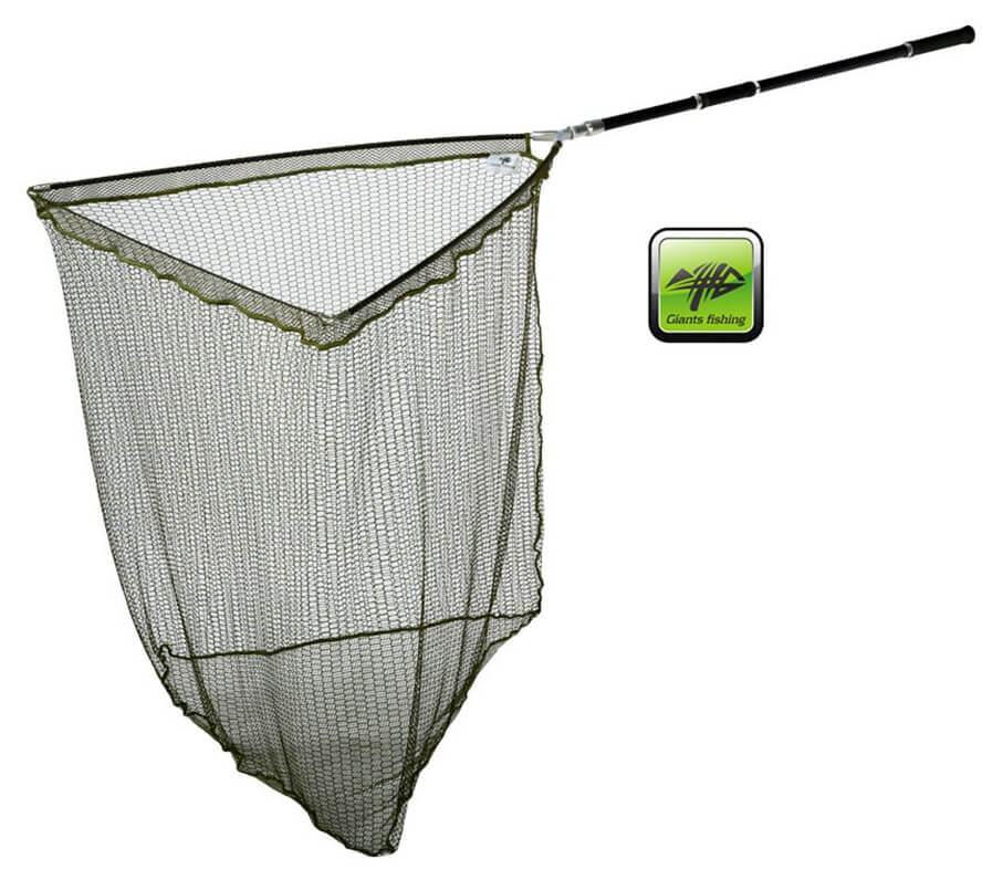Kvalitný veľký kaprový podberák s dĺžkou ramien 105cmx105xm, ktorý je osadený kovovým krížom.