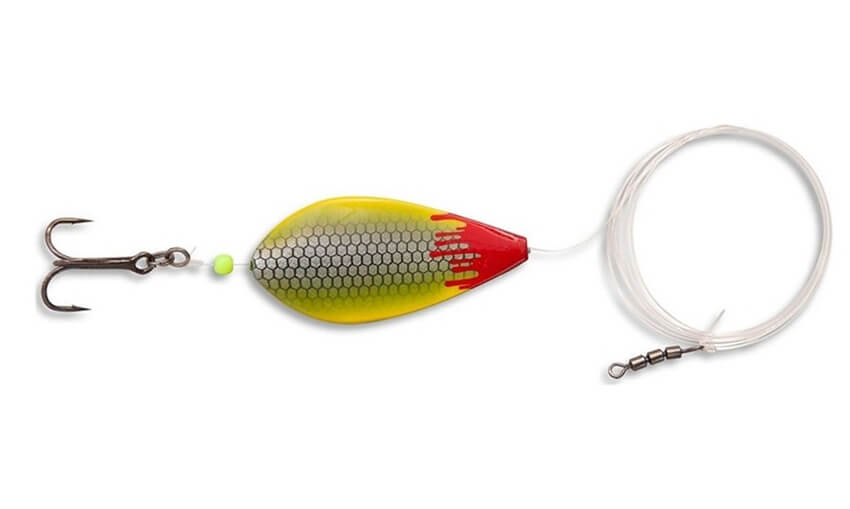 Plandavka Bloody Inliner je naviazaná na 80 cm nadväzci s priemerom silonu 0,28 mm a ukončená trojobratlíkom. Dokonalé nástrahy na pstruha.