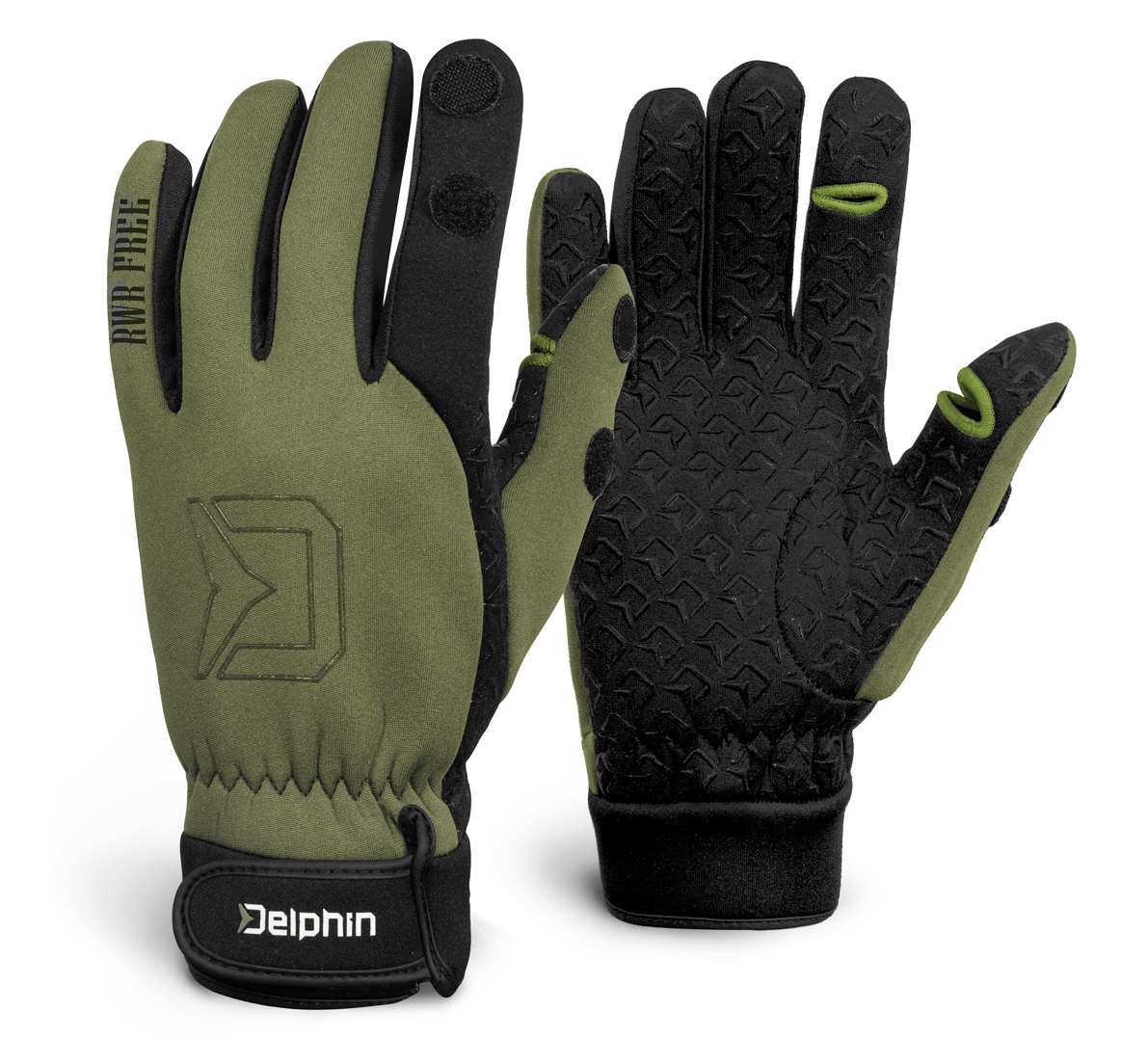 Neoprénové rukavice Delphin RWR Free udržia vaše ruky v teple aj v tých najchladnejších dňoch. Detailné spracovanie rukavíc, posúva level zimnej rybačky na úplne inú úroveň. Veľkým pozitívom je aj pogumovaná plocha na dlani, ktorá je vybavená protišmykovou, pogumovanou vrstvou s inovatívnym designom Delphin loga. Odnímateľné končeky na konci palca a ukazováku, s možnosťou uchytenia suchým zipsom, Vám uľahčia manipuláciu s drobnou bižutériou, či urýchlia úpravu montáže. Aby sa Vám do rukavíc nedostával chlad, či neželaná voda, ich utesnenie je tvorené všitou gumou a dodatočne prispôsobiteľné doťahovacím pásom so suchým zipsom. Farebná kombinácia zelenej a čiernej farby robí rukavice RWR Free dokonalého spoločníka na rybačku ale aj iné voľnočasové aktivity.