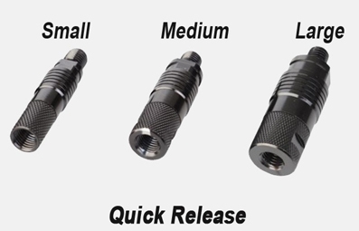 Rýchlospojky sú vyrobené z kvalitného a precízne opracovaného hliníka a sú k dispozícii v troch veľkostiach.