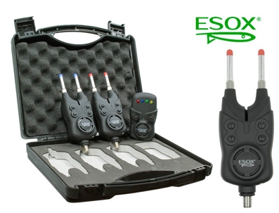 Sada signalizátorov s diaľkovým príposluchom – obsahuje signalizátory Esox TQX Combi Snag, ktoré kombinuju zabezpečenie prútov proti vypadnutiu – „Snag Bar” a integrovanú optickú signalizáciu záberu. Všetky funkcie, teda nastavenie výšky tónu, hlasitosti a citlivosti sa ovládajú pomocou elektronických mikrospínačov. V rámci hlasitosti máte na výber z piatich úrovní od úplného ticha, kedy záber signalizuje len svetelná LED dióda. Pri nastavovaní výšky tónu a citlivosti prístroja máte k dispozícií zakaždým 6 úrovní. Signalizátor je vodeodolný a má zabudované nočné podsvietenie. Stačí, keď po zapnutí signalizátora pridržíte tlačidlo pre vypnutie/zapnutie prístroja po dobu asi 10 sekúnd, po čom sa rozsvieti LED dióda zabudovaná v pravom snag bare. Funkciu vypnete podobne držaním toho istého tlačidla po dobu cca 10 sekúnd. Súčasťou signalizátora je aj konektor na pripojenie svietiaceho swingru v spodnej časti prístroja. Napájanie zabezpečuje 9V batéria. Všetky nastavenia signalizátora ostávajú v pamäti aj po jeho vypnutí a opätovnom zapnutí. V sade však majú signalizátory navyše bezdrôtové vysielače s dosahom približne 150 m. Zábery tak môžete sledovať na bezdrôtovom prijímači. Na prijímači je možné nastaviť hlasitosť a výšku tónu, ktoré sa upravujú pomocou klasických otočných ovládačov. Hlasitosť môžete úplne stíšiť, takže záber je signalizovaný len príslušnou LED diódou, ktorá bliká ešte asi 20 sekúnd po zábere.