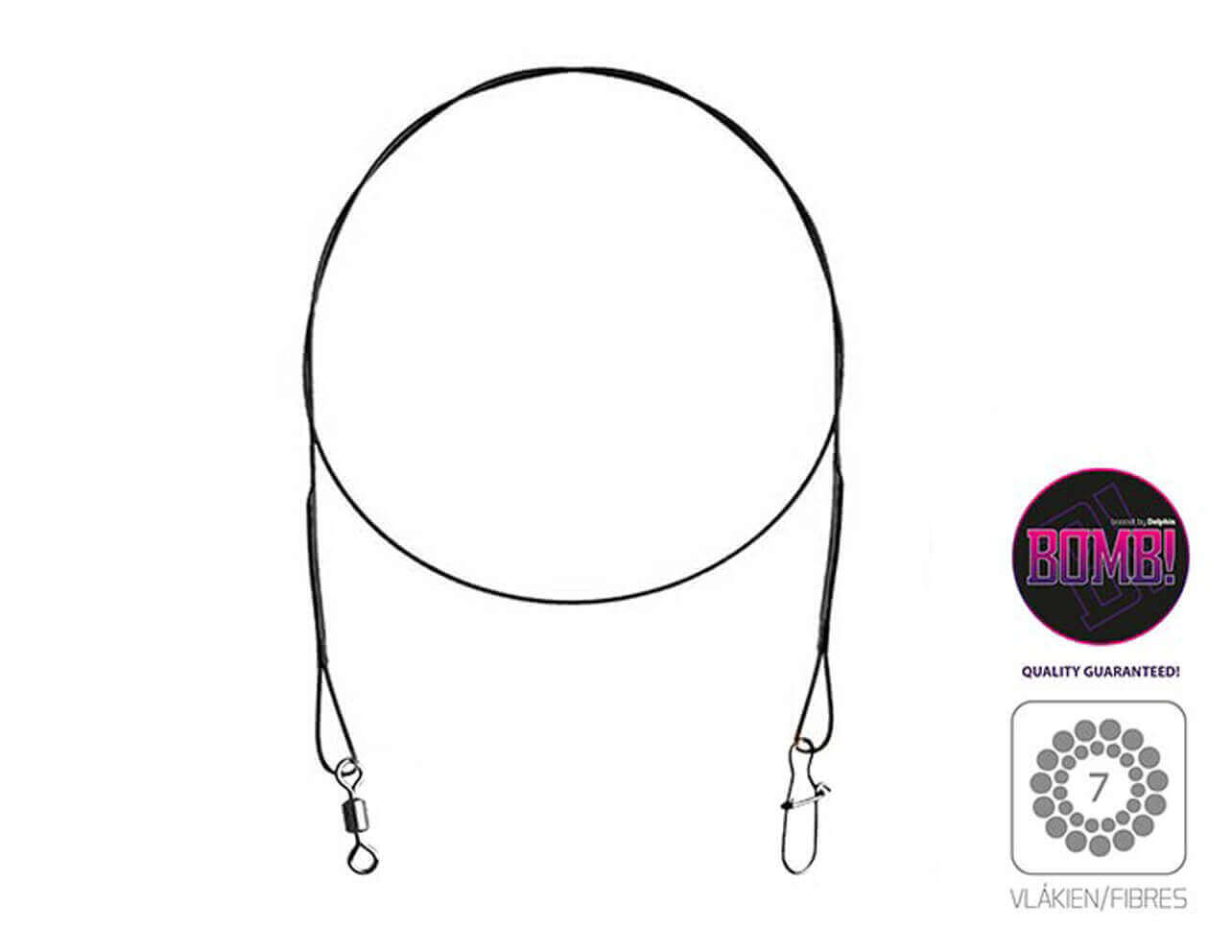 Titánové lanko DELPHIN 1×7 BOMB! s obratlíkom a karabínkou.